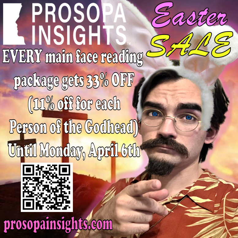 Prosopa Insights is Taylor G. Northcutt's physiognomy firm, dedicated to helping people to better know themselves and thus manifest their full individual potential. We do this by using a variety of personality assessment techniques, with our primary focus being on the various forms of physiognomy, including body reading, temperament reading, and most importantly, facial analysis. You can learn more about our story and our staff on our [[About Us]] page.